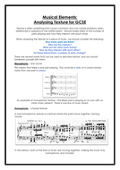 Musical Elements Texture Description / Compositional Elements: The colors,pattern,line and texture describe its feature and tells its ... / Texture is the word we use to describe how sound is organised.. Learn about texture describes the complexity of a musical composition. Cutting, building, tearing or layering of materials, for example. 7 musical elements (brief description). Gcse music (descriptive) mind map on musical elements, created by lizzie.jesson on 03/04/2014. Indian classical music, for example, does not contain harmony, but only the three textures of a melody, rhythm, and a drone.